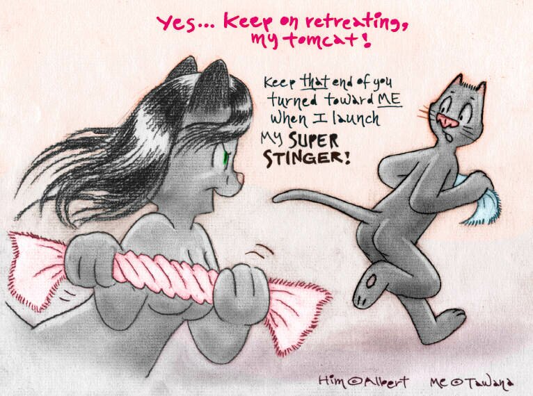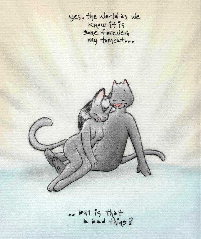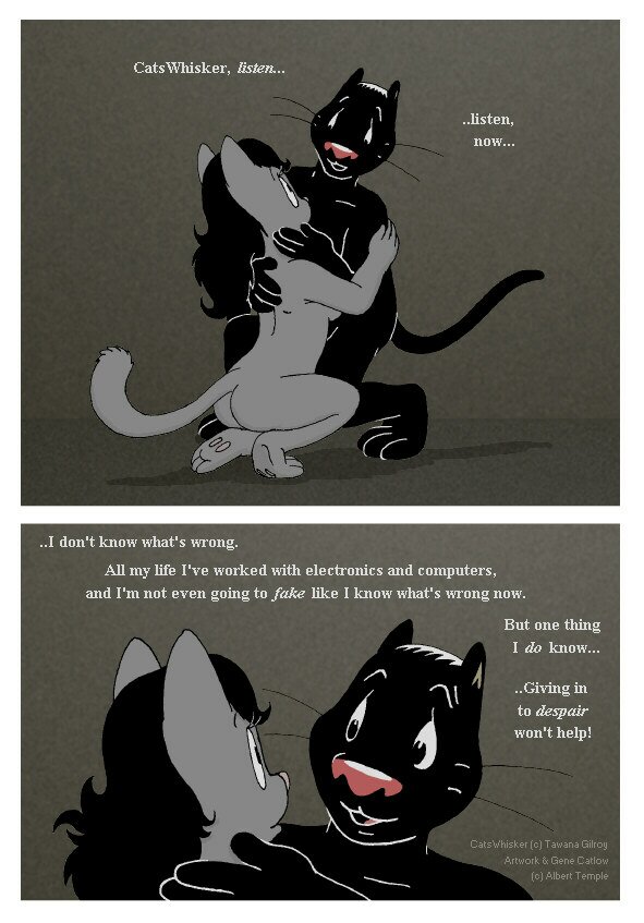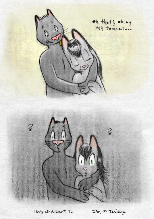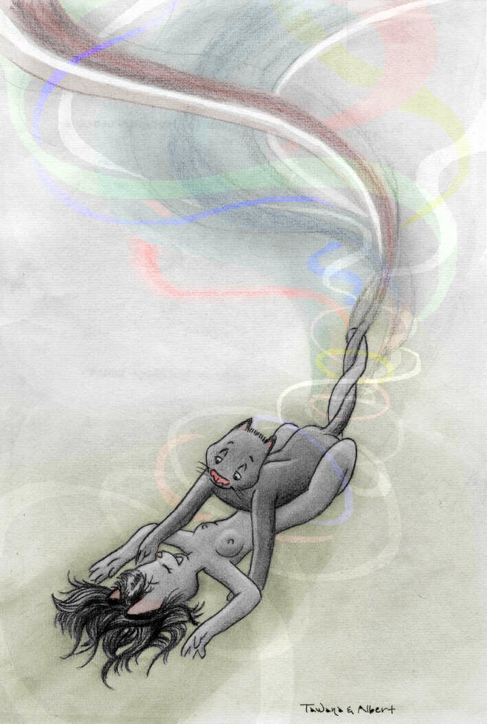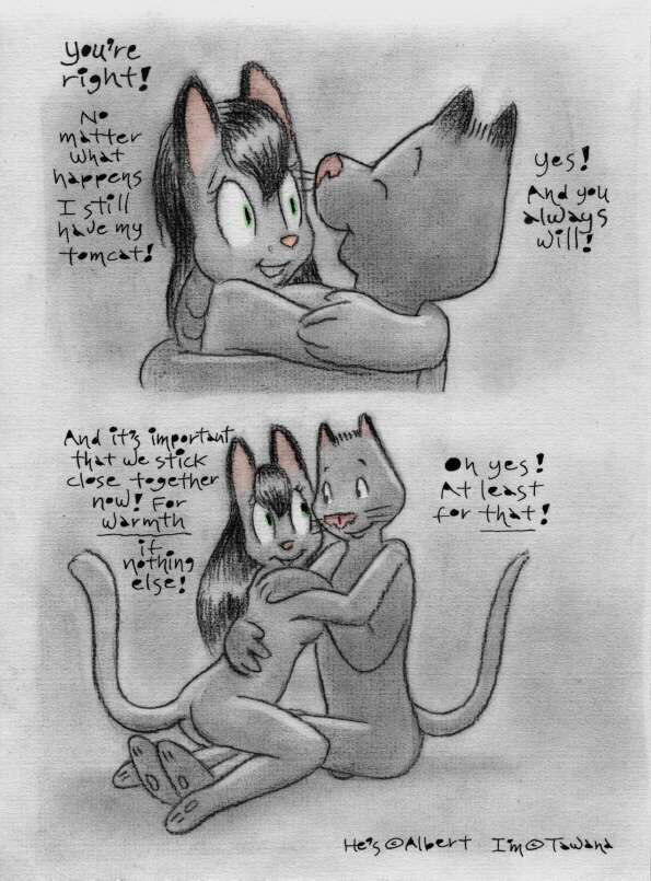 This is a story that was formerly on VCL and Orlando, and was initiated by my lady cat as an experiment to broaden her artistic range. Naturally, I support her in all her endeavors. :) The comments are taken directly from the original image descriptions as they were first posted.Warning! A good many people regard stories like this as naughty. If you are easily offended, better not read it. I, personally, love this story... but hey, I love everything my lady cat and I did together. Trying to second-guess what's gonna offend or upset people is impossible, so I basically just give a simple warning and let it go at that.