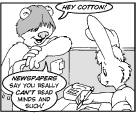 Ernie Hare is a distant cousin of Cotton Taylor, and they spent much of their respective childhoods together growing up in Furriston. Cotton, in fact, regards Ernie as sort of an 'older brother'. Unfortunately for Ernie, his branch of the family has a congenital susceptibility to diseases that affect the nervous system. Most of Ernie's late teenaged years were spent in braces and on crutches, and though he can still stand for brief periods nowadays, he mostly gets around in a wheelchair. Despite this (or, perhaps, in disregard of this) Ernie puts his prodigious skills as a programmer and technical researcher to full use at Furriston City College. And when Ernie and Cotton get together, they are capable of raising just as much of a ruckus as they did when they were growing up.